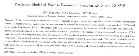 基于kpls和ls-svm的過程參數(shù)預測及其應用