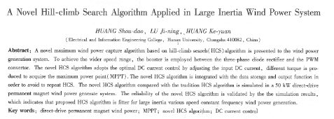 關(guān)鍵詞:永磁直驅(qū)風(fēng)力發(fā)電;****功率跟蹤:新型爬山算洼;直流電流控制