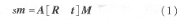 式中,m={x,y,z,i}t∈r4;m=[u,w,1]t∈r3分別表示口點在世界坐標系中的齊次坐標,以及它在圖像坐標系中的像素齊次坐標;s∈r為與齊次世界坐標m有關的比例縮放因子;r ∈r3x3與f∈r3分別為從世界坐標系到攝像機坐標系的旋轉矩陣和平移向量,即攝像機的外參數(shù);a ∈ r3 x3為攝像機內參數(shù)矩陣,其具體形式如下: