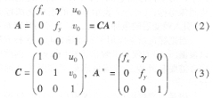 (u0,v0)為主點(叉稱作像面中心)的像素坐標,fx,fy分別為有效焦距在像素坐標系u,v方向上的尺度因子,γ稱為傾斜因子,表征像素坐標系中2個坐標軸之間的角度,在理想情況下,兩軸正交,γ=o。
