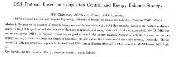結(jié)合擁塞控制和能量均衡策略dsr路由協(xié)議