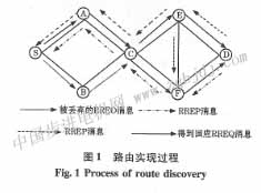 1)路由發(fā)現(xiàn)路由實(shí)現(xiàn)過程,如圖l所示。