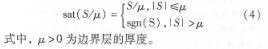 為了抑制抖振,常采用邊界層方法,即飽和函數(shù)sat(s/μ)代替式(3)中的符號函數(shù)sgn(s),函數(shù)sat(s/μ)的定義如下:
