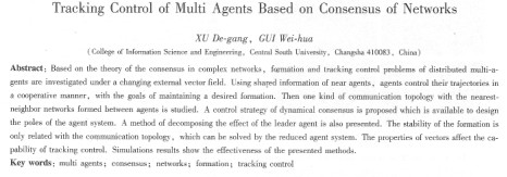 關(guān)鍵詞:多智能體;一致性;網(wǎng)絡(luò);隊(duì)形;跟蹤控制