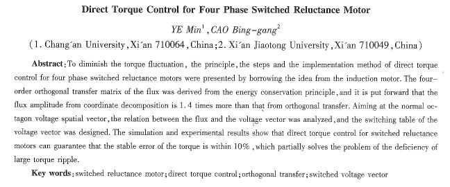 關(guān)鍵詞:開(kāi)關(guān)磁阻電動(dòng)機(jī);直接轉(zhuǎn)矩控制;正交變換;開(kāi)關(guān)電壓矢量