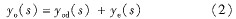 式中:yd(s)為二階線(xiàn)性系統(tǒng)的輸出響應(yīng),yn(s)為高階成份和高頻噪聲的輸出響應(yīng)。狀態(tài)觀測(cè)器的輸出y。(s)也包括兩部分,即: