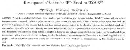 關(guān)鍵詞:iec61850; arm處理器;智能電子設(shè)備;數(shù)字信號(hào)處理器