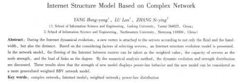 關(guān)鍵詞:復(fù)雜網(wǎng)絡(luò);internet模型;加權(quán)網(wǎng)絡(luò);冪律分布