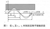 則定子各點(diǎn)的水平速度為: 2直線駐波型超聲電機(jī)定轉(zhuǎn)子接觸分析     一般在超聲電機(jī)的定子和轉(zhuǎn)子之間有一層材質(zhì)相對較軟的摩擦材料,超聲電機(jī)工作時,定子表面的輪廓線可近似為正弦波形狀。當(dāng)預(yù)壓力相對較小時,可假定,定、轉(zhuǎn)子本身不產(chǎn)生接觸形變,只有摩擦層產(chǎn)生相應(yīng)的變形。即在定轉(zhuǎn)子接觸界面上,摩擦層的變形與定子表面的輪廓線一致。設(shè)時刻電機(jī)定子由于二階彎振的作用與摩擦層臨界接觸。t2時刻電機(jī)定子由于二階彎振的作用與摩擦層臨界脫離接觸。to則是介于t1,t2兩個時刻之間的某一時刻。則t0,tl,t2時刻的電機(jī)定轉(zhuǎn)子的接觸狀態(tài)如圖l所示。   間距e表示摩擦材料自由表面(t表面)未發(fā)生變形時距定子表面波型中線(x軸)的距離。x1,x2是to時刻定子與摩擦材料的臨界接觸點(diǎn)?梢钥闯龆ㄗ涌偸窃趚= l/4處首先與摩擦材料先接觸,分析前半個波形,即x屬于(o,1/2)時,定子接觸面始終關(guān)于x= l/4對稱。把x=l/4代人式(7)中,令y =c,可以求得當(dāng)coswt1= c/b時(臨界接觸時刻t1),定子與摩擦層相切。結(jié)合式(6),以cos(t)為變量分析在一個周期里定子與摩擦層的接觸狀況。 |