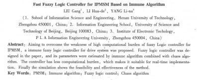 | ipmsm調(diào)速系統(tǒng)的快速免疫模糊控制器 劉  剛1,李華德2,楊麗娜3 (1河南工業(yè)大學(xué)信息科學(xué)與工程學(xué)院,鄭州450001;2北京科技大學(xué)信息工程學(xué)院北京100083;3解放軍信息工程大學(xué)技術(shù)學(xué)院,鄭州450004)     摘要:針對(duì)模糊控制器在內(nèi)置式永磁同步電機(jī)調(diào)速控制系統(tǒng)應(yīng)用中計(jì)算負(fù)荷過(guò)重的缺陷,提出了一種基于免疫模糊控制器的調(diào)速系統(tǒng)方案首先設(shè)計(jì)了模糊控制器,然后引入混沌思想來(lái)改進(jìn)的免疫優(yōu)化算法,進(jìn)而對(duì)模糊控制囂參數(shù)進(jìn)行優(yōu)化這種控制器計(jì)算負(fù)荷小,適合實(shí)際應(yīng)用,實(shí)驗(yàn)研究驗(yàn)證了該算法的可行性和有效性, 關(guān)鍵詞:永磁同步電機(jī);免疫算法;模糊控制;混沌優(yōu)化 中圖分類號(hào):tm351;tm341    文獻(xiàn)標(biāo)志碼:a    文章編號(hào):1001-6848(2010)05-0049-04 0引  言     內(nèi)置式永磁同步電機(jī)因其具有體積小、結(jié)構(gòu)簡(jiǎn)單、維修簡(jiǎn)便、轉(zhuǎn)矩慣性比高、可靠性高等特點(diǎn),在現(xiàn)代交流調(diào)速系統(tǒng)中得到了廣泛應(yīng)用。ipmsm是一典型的非線性多變量耦合系統(tǒng),線性控制難以滿足高控制性能的要求。加之存在一些不可預(yù)見(jiàn)的干擾和電機(jī)運(yùn)行過(guò)程中溫度的變化對(duì)電機(jī)參數(shù)影響,另外電機(jī)負(fù)載一般都不精確,甚至是未知的,如何有效地控制電機(jī)一直是困擾工程師的難題。通常,高性能的調(diào)速系統(tǒng)要求快速準(zhǔn)確的響應(yīng)、抗擾性強(qiáng)、快速跟蹤。傳統(tǒng)的控制器(pi、pid控制器)和各種自適應(yīng)控制器(參數(shù)自適應(yīng)控制器,滑模控制器,變結(jié)構(gòu)控制。     北京市自然科學(xué)基金項(xiàng)目對(duì)速度、參數(shù)變化和負(fù)載擾動(dòng)階躍變化非常敏感。然而ipmsm難以獲得精確的電阻參數(shù),導(dǎo)致這些控制器的設(shè)計(jì)復(fù)雜。由于電流和轉(zhuǎn)速的非線性鵝合,以及磁飽和導(dǎo)致的非線性,使得ipmsm調(diào)速控制再一次變得復(fù)雜。     因?yàn)閕pmsm這些非線性特性,高性能的智能控制引起人們特別的關(guān)注。模糊控制器超過(guò)常用控制器的主要優(yōu)點(diǎn)是其不需要實(shí)際系統(tǒng)的數(shù)學(xué)模型,并且能處理復(fù)雜的震動(dòng)模型。最近一些年,應(yīng)用模糊算數(shù)的調(diào)速系統(tǒng)已經(jīng)出現(xiàn)。然而,多輸入、多函數(shù)、多規(guī)則的常規(guī)模糊控制器的實(shí)時(shí)應(yīng)用時(shí),卻面對(duì)著大量計(jì)算的缺點(diǎn)。本文主要是針對(duì)ipmsm調(diào)速系統(tǒng)設(shè)計(jì)新型模糊控制器,克服處理ipmsm系統(tǒng)的計(jì)算負(fù)荷問(wèn)題。 1 ipmsm的模糊控制策略 1.1數(shù)學(xué)模型     建立ipmsm的電磁一機(jī)械數(shù)學(xué)模型之前,做·如下假設(shè):忽略鐵心飽和,不計(jì)渦流和磁滯損耗;永磁材料的電導(dǎo)率為零;轉(zhuǎn)子上沒(méi)有阻尼繞組;相繞組中感應(yīng)電動(dòng)勢(shì)波形為正弦。   定子電壓方程     電磁轉(zhuǎn)矩方程     電動(dòng)機(jī)的運(yùn)動(dòng)方程   根據(jù)式(1)~式(4)的電機(jī)模型,控制d-q軸的電流即可以完成調(diào)速任務(wù);進(jìn)而可以保持i。=o,控制i0來(lái)控制轉(zhuǎn)速。因此ipmsm模型可以寫為: 1.2模糊控制    采用模糊控制的ipmsm系統(tǒng)矢量控制示意圖,如圖l所示。圖中模糊控制器控制輸出量。    λ(k)為k時(shí)刻i的增量,在每一次采樣時(shí)間,通過(guò)以下步驟,計(jì)算λ(k)的值.     (1)在每一個(gè)采樣時(shí)間計(jì)算轉(zhuǎn)速差a和轉(zhuǎn)差加速度a(k)。a(k)的函數(shù)表達(dá)式為 |