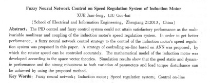 |  感應(yīng)電機(jī)調(diào)速系統(tǒng)的模糊神經(jīng)網(wǎng)絡(luò)控制研究  薛劍鋒,劉國(guó)海 (江蘇大學(xué),鎮(zhèn)江212013)     摘要:針對(duì)多變量、非線性、強(qiáng)耦合的感應(yīng)電機(jī)調(diào)速系統(tǒng),傳統(tǒng)的pid控制和模糊控制均不能達(dá)到理想的控制效果的問(wèn)題,依據(jù)空間矢量控制理論建立了感應(yīng)電機(jī)的數(shù)學(xué)模型,提出了一種基于模糊神經(jīng)網(wǎng)絡(luò)的感應(yīng)電機(jī)調(diào)速系統(tǒng)控制方法,并且在基于神經(jīng)網(wǎng)絡(luò)離線訓(xùn)練的基礎(chǔ)上提出了在線調(diào)整網(wǎng)絡(luò)參數(shù)的策略,實(shí)現(xiàn)了感應(yīng)電機(jī)調(diào)速系統(tǒng)的高精度控制,并通過(guò)仿真進(jìn)行了分析研究。結(jié)果表明,系統(tǒng)具有優(yōu)良的動(dòng)靜態(tài)性能,且對(duì)電機(jī)參數(shù)的變化與負(fù)載擾動(dòng)具有較強(qiáng)的魯棒性。 關(guān)鍵詞:模糊神經(jīng)網(wǎng)絡(luò);感應(yīng)電機(jī);調(diào)速系統(tǒng);在線控制 中圖分類號(hào):tm346    文獻(xiàn)標(biāo)志碼:a    文章編號(hào):1001-6848(2010)05-0053-03 0引  言      感應(yīng)電機(jī)調(diào)速系統(tǒng)是一個(gè)復(fù)雜的強(qiáng)耦合的多變量非線性系統(tǒng)。傳統(tǒng)的pid控制對(duì)感應(yīng)電機(jī)調(diào)速系統(tǒng)參數(shù)和外部負(fù)載擾動(dòng)變化敏感、魯棒性能差。微分幾何控制方法以及逆系統(tǒng)方法也被用于感應(yīng)電機(jī)的控制,但其解耦線性化的實(shí)現(xiàn),要求獲得對(duì)象的精確數(shù)學(xué)模型,難以在實(shí)際中真正應(yīng)用。模糊控制和神經(jīng)網(wǎng)絡(luò)控制均屬于智能控制的范疇,都具有不依賴于被控對(duì)象的數(shù)學(xué)模型和魯棒性強(qiáng)的特點(diǎn),能夠很好的克服模型參數(shù)變化和非線性等不確定因素的影響。但若將其應(yīng)用到感應(yīng)電機(jī)調(diào)速這類強(qiáng)耦合的多變量非線性系統(tǒng)中,二者都具有各自的優(yōu)缺點(diǎn)。     本文將模糊神經(jīng)網(wǎng)絡(luò)引入感應(yīng)電機(jī)調(diào)速系統(tǒng),由神經(jīng)網(wǎng)絡(luò)來(lái)實(shí)現(xiàn)模糊推理,利用神經(jīng)網(wǎng)絡(luò)的學(xué)習(xí)能力來(lái)調(diào)整模糊隸屬函數(shù)和控制規(guī)則,并針對(duì)感應(yīng)電i機(jī)在實(shí)際運(yùn)行中,受電機(jī)負(fù)載、參數(shù)變化影響較大,尤其是轉(zhuǎn)子電阻在電機(jī)運(yùn)行中會(huì)發(fā)生較大的變化,影響了通過(guò)離線訓(xùn)練的神經(jīng)網(wǎng)絡(luò)對(duì)系統(tǒng)控制的精確性這類問(wèn)題,在神經(jīng)網(wǎng)絡(luò)離線訓(xùn)練的基礎(chǔ)上提出了在線訓(xùn)練調(diào)整網(wǎng)絡(luò)參數(shù)的方法,進(jìn)而研究了模糊神經(jīng)網(wǎng)絡(luò)在感應(yīng)電機(jī)調(diào)速系統(tǒng)中的應(yīng)用,并給出了仿真試驗(yàn)結(jié)果,結(jié)果表明了該控制方法的有效性。 1感應(yīng)電機(jī)調(diào)速系統(tǒng)的數(shù)學(xué)模型及系統(tǒng)結(jié)構(gòu)     電流跟蹤型spwm逆變器供電的感應(yīng)電機(jī)變頻調(diào)速系統(tǒng),忽略變頻器的時(shí)滯,在轉(zhuǎn)子磁場(chǎng)定向的條件下d、q兩相坐標(biāo)系下的狀態(tài)方程可以用降維的三階非線性模型描述:徽電   若將變頻器設(shè)置為磁場(chǎng)定向運(yùn)行模式,這時(shí)該臺(tái)逆變器可以不考慮磁鏈的變化(即認(rèn)為磁鏈恒定且為額定值),原系統(tǒng)可作為單輸入、單輸出系統(tǒng)。     系統(tǒng)結(jié)構(gòu)如圖1所示,m為感應(yīng)電機(jī)期望轉(zhuǎn)速,wr為感應(yīng)電機(jī)實(shí)際轉(zhuǎn)速。圖中x1,x2和u分別是模糊神經(jīng)網(wǎng)絡(luò)的輸入和輸出,其論域均設(shè)為[o,1],誤差e和誤差變化率;通過(guò)x映射轉(zhuǎn)化為神經(jīng)網(wǎng)絡(luò)的輸入x1,x2,神經(jīng)網(wǎng)絡(luò)的輸出u通過(guò)u映射轉(zhuǎn)化為感應(yīng)電機(jī)的電氣同步角速度w1。 圖1中ec為誤差目標(biāo)函數(shù),根據(jù)ec由在線訓(xùn)練算法可在線調(diào)節(jié)模糊神經(jīng)網(wǎng)絡(luò)的權(quán)值,所以系統(tǒng)具有自學(xué)習(xí)的功能。 2模糊神經(jīng)網(wǎng)絡(luò)控制器 2.1模糊神經(jīng)網(wǎng)絡(luò)結(jié)構(gòu)     模糊神經(jīng)網(wǎng)絡(luò)結(jié)構(gòu)如圖2所示。圖2中第1層將x1、x2引入網(wǎng)絡(luò);第ⅱ層將x1、x2模糊化,采用的隸屬面數(shù)為高斯函數(shù);第ⅲ層對(duì)應(yīng)模糊推理,ⅱ表示模糊操作,這里用+乘積操作代替取小運(yùn)算;第ⅳ層對(duì)應(yīng)去模糊化操作。網(wǎng)絡(luò)的輸入輸出關(guān)系如下: 第1層輸出節(jié)點(diǎn): 第ⅱ層輸入輸出節(jié)點(diǎn): |