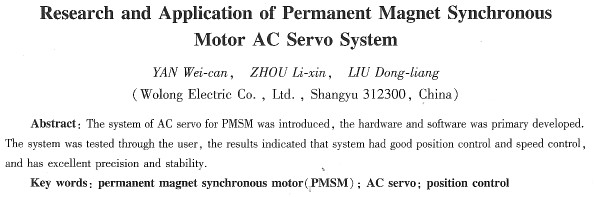 | 永磁同步電機交流伺服系統(tǒng)的研究與應(yīng)用     嚴(yán)偉燦,周立新,劉棟良 (臥龍電氣集團股份有限公司,浙江上虞312300) 摘要:介紹永磁同步電動機交流伺服系統(tǒng),著重敘述了交流伺服系統(tǒng)的軟、硬件結(jié)構(gòu),并在此基礎(chǔ)上進行了系統(tǒng)的檢測。通過囊例證明:該系統(tǒng)具有良好的位置控制及速度響應(yīng)性能,實現(xiàn)了對磁同步電動機高性能控制和系統(tǒng)可靠性的要求,滿足客戶的需求。     關(guān)鍵詞:永磁同步電機;交流伺服;位置控制     中圖分類號:TM 351  文獻標(biāo)志碼:A文章編號:1673-6540(2010)05-0049-03 0  引 言         隨著裝備自動化水平的不斷發(fā)展,伺服系統(tǒng)的應(yīng)用越來越廣泛,數(shù)字信號處理器(DsP)技術(shù)的發(fā)展和應(yīng)用[1-2]。對諸如運動控制領(lǐng)域所要求的電機高性能控制,全數(shù)字化交流伺服技術(shù)起到了巨大的推動作用,提高了系統(tǒng)的速度、精度、可靠性及抗干擾能力。     相比丁正弦脈寬調(diào)制(SPWM),空間矢量脈寬調(diào)制(sVPwM)技術(shù)具有電壓利用率高等優(yōu) 點[3-4],在交流變頻調(diào)速系統(tǒng)上應(yīng)用廣泛[5]同樣廣泛應(yīng)用于各種交流伺服系統(tǒng)。本文介紹一種以TMs320F2810為控制核心、永磁同步電動機(PMsM)為執(zhí)行機構(gòu),采用sVPwM的交流伺服系統(tǒng)。該系統(tǒng)具有體積小、重量輕、功耗低、調(diào)方便等優(yōu)點,町以實現(xiàn)對PMsM交流伺服系統(tǒng)的速度、位置、轉(zhuǎn)矩的精確控制。系統(tǒng)大致可分成兩大板塊,即以TMS320t屹810為控制核心的控制板塊和以智能功率模塊(IPM)為驅(qū)動核心的功率驅(qū)動板塊,外加一些輔助設(shè)備,如D/A顯示人機界面、鍵盤和顯示單元等。 l  系統(tǒng)的硬件結(jié)構(gòu) 1.1主電路     主電路包括功率逆變器供電電源、功率逆變和電源保護?紤]到單相和三相都能夠使用,整流器選擇的是30 A/600 V三相不可控整流模塊。三相(或單相)Ac輸入,經(jīng)整流橋后的母線直流電壓給下一級逆變橋供電,同時加以軟起動電路進行上電瞬間的電容保護。 1.2 IPM     IPM功率逆變器的功能是根據(jù)控制電路的指令,將電源單元提供的高壓直流電轉(zhuǎn)變?yōu)樗欧姍C定子繞組中的三相交流電,以產(chǎn)牛所需電磁轉(zhuǎn)矩。主回路采用集驅(qū)動電路、保護電路和功率管于一體的IPM,這種集成結(jié)構(gòu)減小了走線引入的分布電感,器件的開通和關(guān)斷具有更好的一致性。與普通的絕緣柵雙極晶體管(IcBT)模塊相比,由于集成了驅(qū)動和保護電路,使得系統(tǒng)的硬件電路設(shè)計和開發(fā)變得簡單、可靠。本系統(tǒng)選用三菱公司的PM20csJ06,其耐壓為600 V,額定電流為20 A,****開關(guān)頻率為20 kHz。 l.3控制模塊     本系統(tǒng)以TMs320F2810為控制核心,外加一些外圍輔助電路,來完成對PMsM的控制。 1.3.1電流檢測  電機電流由LEM電流傳感器檢測后,得到成比例的模擬電壓信號,其幅值在3~十3 V之間呈正弦波動。DsP內(nèi)部只能處理單極性的輸入信號,對A/D采樣時需增加電壓抬高電路,從而使電壓變換在0~3 V之間,供DsP采樣來檢測電流的信號。 1.3.2位置轉(zhuǎn)速檢測     系統(tǒng)采用復(fù)合式光電編碼器,兩路正交脈沖信號A、B,一路零位脈沖信號z,實現(xiàn)速度及位置反饋;另外,三路相差120。的初始位置脈沖信號(u、V、w)實現(xiàn)初始位置的定位,同時為了實現(xiàn)符合DsP所要求的3 3 V,這六路信號(A、B、z、u、V、w)都經(jīng)過74LVTH244A,再分別接到DsP的捕獲端口(cAPl~cAP6)和通用I/O端口(10一PAl3~10PAl5)。 1.3.3空間矢量脈寬調(diào)制     作為電力電子裝置的核心技術(shù),PwM技術(shù)被廣泛應(yīng)用于變頻調(diào)速電機傳動中。     PwM技術(shù)中應(yīng)用最為普遍的是sPwM和sVPwM。實踐和理論證明,與sPwM技術(shù)相比,sVPwM方式具有高次諧波更低和電壓利用率高等優(yōu)點,因此越來越受到人們的重視。如圖1所示,通過開通Ua和Ub不同的時間,使其兩個合成電壓矢量等效于參考電壓矢量Ur。     在DsP中實現(xiàn)sVPwM算法,該算法得到的基波電壓經(jīng)PwM口輸出后的波形(外接濾波電路)如圖2所示。圖中曲線l、2為基波相電壓波形,其****幅值為UDc,曲線3為曲線1減曲線2所得到的基波線電壓波形,從圖中可以看出sVPwM屬于雙波頭調(diào)制,輸出的線電壓波形為正弦波,與sPwM(其基波****相電壓幅值為UDC√2)相比,提高了電壓的利用率。 |