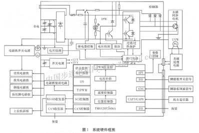 | 一種無電流環(huán)永磁同步電動機伺服控制的研究 嚴偉燦1,任寶棟1,劉棟良1,譚瑩2 (1臥龍電氣集團股份有限公司,上虞312300;2西安微電機研究所,西安710077)     摘要:針對永磁同步電動機的傳統(tǒng)控制,利用永磁同步電機空間矢量脈寬調(diào)制原理( svpwm)進行解耦,采集兩路電流信號來控制電機的轉(zhuǎn)矩及轉(zhuǎn)速,該文提出了一種基于精確的光電編碼信號測速的無電流環(huán)直接電壓控制策略,省去兩路電流采樣信號,節(jié)約了成本,提高可靠性;通過dsp芯片tms320f2407設計了工業(yè)縫紉機控制器的硬件及軟件,實現(xiàn)了無電流環(huán)永磁同步電動機控制,滿足客戶的需求。 關鍵詞:無電流環(huán);工業(yè)縫紉機;永磁同步電動機;伺服控制 中國分類號:tm341; tm351    文獻標志碼:a    文章編號:1001-6848(2010)06-0093-03 0引  言     傳統(tǒng)工業(yè)縫紉機采用離合器電機帶動機頭運轉(zhuǎn),轉(zhuǎn)速一般在3 000 r/min以上,待機時離合器脫開,但電機仍處于空載運轉(zhuǎn),耗能高。將永磁同步電機(pmsm)用于工業(yè)縫紉機的驅(qū)動,可實現(xiàn)工業(yè)縫紉機的各種自動化功能,并且具有轉(zhuǎn)動慣量小、響應速度快:效率高、體積小、噪音低等優(yōu)點r。pmsm傳統(tǒng)控制方式的基本思路是利用空間矢量原理進行解耦,使永磁同步電機的電流進行分解,從而按直流電機的控制規(guī)律來進行控制,難點在于需要同時采樣電機至少兩路的電流值,并對其進行矢量變換(clark變換和park變換),最終變換為電壓信號。文獻[2-4]針對無刷電機進行了理論分析,通過模糊算法或改進的模糊算法提供了很好的動態(tài)性能,但算法過于復雜,不利于廣泛使用,且計算機編程計算量大,一來在增加了硬件成本的同時也占用了比較大的軟件開銷,不利于工程實現(xiàn)。     針對額定扭矩相對恒定的工業(yè)縫紉機用電機,采用了一種基于精磅的光電編碼信號測速并通過空間矢量脈寬調(diào)制控制的電機控制模式?刂齐姍C的根本目的在于控制電機的轉(zhuǎn)矩,也實現(xiàn)對電機轉(zhuǎn)速的控制,svpwm的作用就是控制其轉(zhuǎn)矩。光電編碼器檢測到脈沖后由dsp控制器計算出當前的轉(zhuǎn)速,同既定的轉(zhuǎn)速進行比較,比較后通過積分分離的pid算法,得出應當施加的轉(zhuǎn)矩值,通過svpwm算法,進行pmsm電機電壓的控制。發(fā)揮dsp控制器在運動控制領域的應用優(yōu)勢,該系統(tǒng)采用以dsp芯片為核心再配以簡單可靠的外圍電路,其控制算法及功能全部由軟件實現(xiàn)。這種方案采用的是不檢測電流,直接通過電壓控制的技術。對于工業(yè)縫紉機這類負載波動小、控制精度要求較低的機械,該方案較為適用。由于省掉了電流測量環(huán)節(jié),使整個系統(tǒng)簡潔可靠,并降低了成本。 l  系統(tǒng)的硬件結構   工業(yè)縫紉機用伺服控制系統(tǒng)整體結構如圖1所示,其中220 v市電輸入,整流橋、濾波電容、制動器、ipm逆變器和pmsm構成系統(tǒng)的功率電路,光電編碼器信號構成的速度位囂檢測電路和數(shù)字信號處理器( dsp)構成控制回路,人機界面、鍵盤和各種功能電磁鐵構成外圍電路。     交流220 v電壓經(jīng)過整流濾波后得到穩(wěn)定的直流電源供給智能功率模塊(ipm),功率模塊在svpwm下產(chǎn)生i相pwm電壓供給pmsm,然后pmsm帶動縫紉機機頭進行縫紉工作。      控制系統(tǒng)的主回路逆變器采用智能功率模塊,該模塊采用20 a/600 v igbt功率管,它內(nèi)含驅(qū)動電路,并設計有過壓、過流、過熱、欠壓等故障檢測保護電路。同時系統(tǒng)還沒計了軟啟動電路以減少強電對主回路的沖擊。在系統(tǒng)故障保護環(huán)節(jié)中還設置了主回路過壓、欠壓、過熱、過載、制動異常、光電編碼器反饋斷線等保護功能,故障信號由軟硬件配合檢測,一旦出現(xiàn)保護信號,便可通過軟件或硬件邏輯立刻封鎖pwm驅(qū)動信號。與pmsm同軸旋轉(zhuǎn)的光電編碼器和機頭定位器產(chǎn)生一對正交脈沖信號和pmsm轉(zhuǎn)子位置信號,用于dsp的速度和位置控鋼。縫紉機1.作時,通過腳踏板調(diào)速器給定pmsm的目標轉(zhuǎn)速,通過人機界面接收目標位置,通過檢測機頭定位器的上下停針信號,配合各個功能電磁鐵,完成自由縫、倒網(wǎng)縫、加固縫、定針縫等各種縫制工藝。 2系統(tǒng)的軟件設計       系統(tǒng)的各種縫制功能以及控制策略的實現(xiàn),主要靠系統(tǒng)軟件來完成,因此,可靠的   |