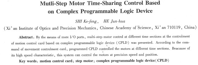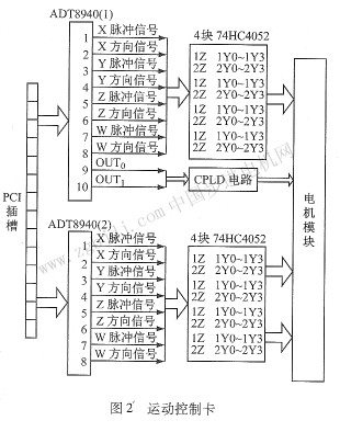 | 基于復(fù)雜可編程邏輯器件的多步進(jìn)電機(jī)分時(shí)控制     石科峰,何俊華 (中國科學(xué)院西安光學(xué)精密機(jī)械研究所,陜西西安710119)      摘要:根據(jù)多I/0口的特點(diǎn),設(shè)計(jì),在運(yùn)動(dòng)控制卡的控制F基于復(fù)雜可編程邏輯器件(CPLD)的多步進(jìn)電機(jī)控制。以運(yùn)動(dòng)控制卡系統(tǒng)為上位機(jī),通過對(duì)CPLD編程進(jìn)行電機(jī)的分時(shí)控制。由于運(yùn)動(dòng)控制卡的輸入、輸出均采用光耦隔離,因此抗干擾能力強(qiáng)、脈沖輸出頻率誤差率低;同時(shí),CPLD具有高速性能,可達(dá)到列多臺(tái)步進(jìn)電機(jī)的速度及位置的精確控制。     關(guān)鍵詞:運(yùn)動(dòng)控制卡;步進(jìn)電機(jī);復(fù)雜可編程邏輯控制器件     中圖分類號(hào):TM 383 6文獻(xiàn)標(biāo)志碼:A文章編號(hào):16734540(2010)064)0354)3l 0 引言      步進(jìn)電機(jī)在工業(yè)、航天等領(lǐng)域的應(yīng)用范圍越來越廣,不同的應(yīng)用要求和環(huán)境對(duì)電機(jī)的控制也提出了不同的設(shè)計(jì)方法。比較常見的針對(duì)實(shí)現(xiàn)多步進(jìn)電機(jī)的控制有兩種:(1)完全基于運(yùn)動(dòng)控制卡,該方法設(shè)計(jì)簡單,但需要多個(gè)運(yùn)動(dòng)控制卡,在硬件的連接上也比較復(fù)雜;(2)通過運(yùn)動(dòng)控制卡+繼電器,對(duì)多電機(jī)的控制需要多個(gè)繼電器占用空間且浪費(fèi)成本。本文介紹的系統(tǒng)采用運(yùn)動(dòng)控制卡作為上位機(jī),對(duì)電機(jī)進(jìn)行分組選擇,復(fù)雜可編程邏輯器件(Complex Programmable Logic Device,CPLD)作為下位機(jī)控制電機(jī)的通斷,大大簡化,電路,并節(jié)約了成本。 1  系統(tǒng)總體結(jié)構(gòu)   該系統(tǒng)由運(yùn)動(dòng)控制卡模塊、CPLD電路、4個(gè)組件控制模塊(每組件8臺(tái),共32臺(tái)電機(jī))等組成。各組件控制模塊相互獨(dú)立,分別用于控制各組件的電機(jī)運(yùn)動(dòng)?刂撇糠植捎蒙钲诒姙閿(shù)控技術(shù)有限公司的ADT8940運(yùn)動(dòng)控制卡和Xilinx公司的XC9536CPLD,由于要控制32臺(tái)電機(jī),為了減少擴(kuò)展I/O口的設(shè)計(jì),系統(tǒng)采用CPLD取代傳統(tǒng)的單片機(jī)[1]。運(yùn)動(dòng)控制卡通過PCI總線與計(jì)算機(jī)通信,其兩個(gè)開關(guān)量的輸出信號(hào)作為CPLD的輸_八信號(hào),進(jìn)行電機(jī)的分組選擇,CPLD的輸出信號(hào)通過模擬開關(guān)74HC4052使被選中組的電機(jī)導(dǎo)通。系統(tǒng)總體結(jié)構(gòu)如圖1所示。 2系統(tǒng)的硬件設(shè)計(jì) 2.1運(yùn)動(dòng)控制卡模塊     運(yùn)動(dòng)控制卡完成電機(jī)運(yùn)動(dòng)控制的所有細(xì)節(jié),包括脈沖和方向信號(hào)的輸出、加減速的處理、原點(diǎn)、限位及電機(jī)的分組選擇信號(hào)等。運(yùn)動(dòng)控制卡根據(jù)Pc機(jī)的實(shí)時(shí)控制指令向步進(jìn)電機(jī)驅(qū)動(dòng)器發(fā)出脈沖、方向等控制信號(hào),通過相應(yīng)的步進(jìn)電機(jī)驅(qū)動(dòng)器驅(qū)動(dòng)電機(jī)運(yùn)行。系統(tǒng)采用的ADT8940有如下特點(diǎn)[2]:(1)基于PCI總線的高性能伺服/步進(jìn) 控制卡,支持即插即用。(2)脈沖輸出方式可用單脈沖(脈沖+方向)或雙脈沖(脈沖+脈沖)方式。該系統(tǒng)采用單脈沖方式,****脈沖頻率2 MHz,采用先進(jìn)技術(shù),保證在輸出頻率較高時(shí),頻率誤差小于0.1%。(3)速度控制可用定速和梯形加減速。,(4)位置管理采用兩個(gè)加/減計(jì)數(shù)器。一個(gè)用于內(nèi)部管理驅(qū)動(dòng)脈沖輸出的邏輯位置計(jì)數(shù)器;一個(gè)用于接收外部的輸入,輸八信號(hào)是A/B相輸入的編碼器或光柵尺,作為實(shí)際位置計(jì)數(shù)器。(5)汁數(shù)器位數(shù)高達(dá)32位,****范圍為一2 147 483 648~+2 147 483 647。(6)所有入、輸出均采用光耦隔離,抗干擾性強(qiáng)。運(yùn)動(dòng)控制R模塊的關(guān)鍵在于軟件設(shè)計(jì),主要是根據(jù)Pc機(jī)的實(shí)時(shí)指令,由兩個(gè)開關(guān)輸出量0uL、OuT,作為cPLD的輸入信號(hào)進(jìn)行電機(jī)分組選擇,脈沖和方向信號(hào)分別接到8塊模擬開關(guān)74Hc4052的16個(gè)公共端,由分組信號(hào)選通后接人電機(jī)。由于ADT8940是四軸控制卡,而系統(tǒng)每個(gè)組件有8臺(tái)電機(jī),岡此需要2張運(yùn)動(dòng)控制卡,如圖2所示。 2.2 CPLD電路     整個(gè)系統(tǒng)有四臺(tái)組件,但要求同一時(shí)間只有一臺(tái)組件在工作。由于是分時(shí)工作的,因此可以通過cPLD控制電路來選擇四個(gè)中的一個(gè)組件,如果需要調(diào)整其他組件,可以再次進(jìn)行選擇。系統(tǒng)采用xilinx公司的xc9536cPLD,屬x00500系列器件,是一款高性能、有特點(diǎn)的可編程邏輯器件。從結(jié)構(gòu)上看,其包含三個(gè)單元:宏單元、可編程I/O單元和可編程的內(nèi)部連線。其主要特點(diǎn)如下:(1)高性能。在所有可編程引腳之間pin—pin延時(shí)5 ns,系統(tǒng)的時(shí)鐘速度可達(dá)到i00 MHz。(2)容量范圍大。容量范圍為36個(gè)宏單元,可用系統(tǒng)門為800個(gè)。(3)5 V在系統(tǒng)編程,可以編程lO000次。(4)具有強(qiáng)大的強(qiáng)腳鎖定能力。(5)每個(gè)宏單元都有可編程低功耗模式。(6)沒有用的引腳有編程接地能力。       對(duì)于cPLD電路,運(yù