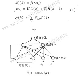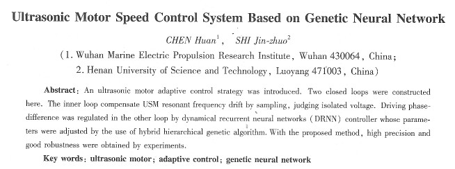 | 基于遺傳神經(jīng)網(wǎng)絡的超聲波電機轉(zhuǎn)速控制系統(tǒng)     陳  歡1,   史敬灼2 (1武漢船用電力推進裝置研究所,湖北武漢430064;2河南科技大學,河南洛陽471003) 摘要:介紹一種超聲波電機(USM)自適應控制策略,系統(tǒng)采用雙閉環(huán)控制,內(nèi)環(huán)通過對弧極電壓進行采樣、判斷,補償USM諧振頻率的漂移;外環(huán)利用動態(tài)遞歸神經(jīng)嘲絡控制調(diào)節(jié)兩相驅(qū)動交變電壓的相位差,實現(xiàn)轉(zhuǎn)速的自適應控制。DRNN的結(jié)構(gòu)和初始參數(shù)通過混合遞階遺傳算法離線訓I練獲得。試驗結(jié)果征明,該控制系統(tǒng)具有較高的控制精度和較好的穩(wěn)定性。關(guān)鍵詞:超聲波電機;自適應控制;遺傳神經(jīng)網(wǎng)絡中圖分類號:TM 301 2文獻標志碼:A文章編號 0 引言      超聲波電機(Uhrasonic Motor,USM)是一種新型特種電機,在工業(yè)控制、精密儀器、辦公自動化等領(lǐng)域有著廣闊的應用前景[1]。但是,USM具有嚴重的非線性、時變性和強耦合,數(shù)學建模非常困難,至今還沒有精確的數(shù)學模型,傳統(tǒng)的依賴被控對象數(shù)學模型的控制策略很難對其實施有效控制。將動態(tài)遞歸神經(jīng)網(wǎng)絡(Dynamical ReculTentNeural Networks,DRNN)應用于USM的自適應速度控制,彌補_廣上述方法的不足。采用混合遞階遺傳算法對網(wǎng)絡的結(jié)構(gòu)和初始參數(shù)進行離線優(yōu)化,再通過梯度下降對網(wǎng)絡參數(shù)進行在線調(diào)整。試驗結(jié)果表明:該方法不僅具有控制靈活、適應性強的優(yōu)點,還具有較高的控制精度和魯棒性。 l  usM驅(qū)動控制系統(tǒng)   USM利用兩相具有一定頻率、幅值和相位差的正弦電壓來驅(qū)動,但由于電機本身的呈容性,可以使用方波電壓來直接驅(qū)動。本文采用調(diào)相調(diào)速方案,使驅(qū)動電壓的相位差在一90!+90。連續(xù)可調(diào)一選取DSP56F801內(nèi)置的脈寬凋制(PulseWidth Modulation,PWM)模塊作為驅(qū)動信號發(fā)生器,通過修改PWM周期寄存器(PWMCM)和計數(shù)模值寄存器(PWMVAL)的值,即可實現(xiàn)驅(qū)動電壓頻率和相位差的闊節(jié)。驅(qū)動信號經(jīng)隔離放大后,巾兩相推挽逆變電路逆變、升壓成兩相高壓、高頻方波電壓,驅(qū)動USM。為了補償USM的諧振頻率瓢移,需對USM弧極反饋電壓采樣,將采樣值與設定值進行比較,若小于設定值則減小PWMCM的值,若大于等于則保持不變,以跟蹤諧振頻率的漂移。為保證測速的精度,采用光電編碼器作為 測速單元,將其接定時器內(nèi)部的正交解碼單元即可實現(xiàn)轉(zhuǎn)速及轉(zhuǎn)角的測算?刂葡到y(tǒng)結(jié)構(gòu)框圖如圖1所示. 2 USM參數(shù)辨識自適應控制系統(tǒng)     由于DRNN能夠?qū)崿F(xiàn)高度復雜的非線性動態(tài)映射,又具有自學習、白適廊的能力,故將其作為自適應控制器(DRNNC),其輸人為給定轉(zhuǎn)速r(^)、電機上一時刻實際轉(zhuǎn)速y(k—1)及NNc上一時刻輸出的控制量Up(k一1),輸出為控制信號Up(k)用以調(diào)節(jié)兩相驅(qū)動電壓的相位差。用作參數(shù)辨識的辨識器(DRNM)輸人為實際輸入usM的控制量Up(k)和電機上一時刻的實際轉(zhuǎn)速y(k—1),輸出為預測轉(zhuǎn)速y(k)。利用y代替y,為DRNNc的在線訓練提供參數(shù)。uSM參數(shù)辨識白適應控制系統(tǒng)框圖如圖2所示。 3  DRNN及其訓練方法     DRNN結(jié)構(gòu)如圖3所示。它除了輸入層、隱層、輸出層外還有一個特殊的結(jié)構(gòu)單元,用來記憶隱層單元以前時刻的輸出值,結(jié)構(gòu)單元在時刻的輸入等于隱層在k—l時刻的輸出,但為了減少在線學習時間,提高實時陛,結(jié)構(gòu)單元的輸出僅輸入到相應的隱層單元。設網(wǎng)絡輸入向量為x,輸入單元與隱層單元間的連接權(quán)值矩陣為W1,隱層單元與輸出單元間的連接權(quán)值向量為W2結(jié)構(gòu)單元與隱層單元間的連接權(quán)值向量為W3,隱層激活函數(shù)為l廠(此處選為1/(1+e-x)),隱層第j個神經(jīng)元輸出為Hj,則網(wǎng)絡的輸入輸冉關(guān)系為 3、1離線訓練     離線訓練的樣本均通過試驗的方法獲得。NNc的輸入樣本向量為Xci={r(k),y(k-1), Up(k-1)},輸出樣本矢量為Yci={Up(k)},Up(k)為輸入uSM的兩相交流電壓的相位差,可由k時刻電機轉(zhuǎn)速通過查對應的轉(zhuǎn)速相位差或轉(zhuǎn)速電壓幅值曲線獲得。NNI的輸入樣本為向量Xii={Up(k-1),yf(k一1)},輸出樣本向量為Yi={y(k)},y(k)為預測轉(zhuǎn)速。     傳統(tǒng)的洲練算法足在網(wǎng)絡結(jié)構(gòu)已知的基礎(chǔ)上對網(wǎng)絡參數(shù)進行尋優(yōu),無法對網(wǎng)絡結(jié)構(gòu)進行優(yōu)化。本文采用混合遞階遺傳算法對網(wǎng)絡結(jié)構(gòu)和參數(shù)一并優(yōu)化,遞階遺傳算法的尋優(yōu)過   |