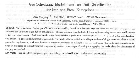 | 一種基于單元分類的鋼鐵企業(yè)煤氣調(diào)度模型     聶秋平。2,吳敏1,張超1,熊永華1     (1中南大學(xué)信息科學(xué)與工程學(xué)院,湖南長(zhǎng)沙410083;2湖南華菱漣源鋼鐵有限公司信息自動(dòng)化中心,湖南婁底417009)     摘    要:針對(duì)如何高效、合理利用煤氣的問題,以國(guó)內(nèi)某大型鋼鐵聯(lián)合企業(yè)為背景,通過分析其煤氣系統(tǒng)流程與結(jié)構(gòu),按照在生產(chǎn)過程中所起作用的不同,對(duì)各煤氣用戶進(jìn)行單元分類處理,每一煤氣用戶所屬的單元擁有相同的煤氣產(chǎn)消特點(diǎn)或方式;基于此單元分類方法,提出了一種新的煤氣調(diào)度模型,模型根據(jù)實(shí)際生產(chǎn)需求來制定各煤氣用戶統(tǒng)一的調(diào)度目標(biāo),并根據(jù)用戶所屬單元類別采用不同的約束條件;最后給出了數(shù)學(xué)規(guī)劃形式的模型表連式和相應(yīng)的約束方程,并給出了模型的求解和應(yīng)用實(shí)倒。 關(guān)鍵詞:鋼鐵企業(yè);煤氣;調(diào)度;單元分類;數(shù)學(xué)規(guī)劃 中圖分類號(hào):tp 27    文獻(xiàn)標(biāo)識(shí)碼:a l引言     煤氣是鋼鐵企業(yè)重要的二次能源,其消耗量占企業(yè)總能耗的百分之30左右。為了降低能耗,合理利用煤氣顯得尤為重要。在實(shí)際生產(chǎn)中,由于生產(chǎn)、檢修計(jì)劃及其他因素的變化,各種煤氣的產(chǎn)生與消耗量不斷波動(dòng),煤氣系統(tǒng)在短時(shí)間內(nèi)易表現(xiàn)出不平衡狀態(tài),這可能導(dǎo)致煤氣利用效率低下。     目前,針對(duì)煤氣調(diào)度的研究主要包括模型化的方法和一些現(xiàn)代先進(jìn)算法或理論,如分級(jí)理論、模糊技術(shù)、遺傳算法、拓?fù)鋵W(xué)原理等。不過上述研究工作均從煤氣系統(tǒng)整體考慮出發(fā),制定全廠的調(diào)度目標(biāo)與條件,而對(duì)細(xì)節(jié),如各分廠煤氣產(chǎn)消量特性、各用戶自身產(chǎn)消煤氣特點(diǎn)、某些煤氣緩沖用戶在煤氣系統(tǒng)中所起作用的考慮則尚存欠缺。   本文在分析鋼鐵企業(yè)煤氣系統(tǒng)的基礎(chǔ)上,充分考慮了煤氣用戶在生產(chǎn)過程中的不同特點(diǎn),通過分析各用戶煤氣產(chǎn)生或消耗特性,將其視為調(diào)度單元進(jìn)行分類,根據(jù)實(shí)際生產(chǎn)情況確定目標(biāo)函數(shù)和不同類別煤氣用戶的約束條件。 2鋼鐵企業(yè)煤氣系統(tǒng)分析     在鋼鐵企業(yè)中,大部分生產(chǎn)過程需要產(chǎn)生或消耗一定量的煤氣,煤氣的產(chǎn)消量和熱值高低對(duì)產(chǎn)品產(chǎn)量也有決定性的影響。同時(shí),煤氣子系統(tǒng)作為能源系統(tǒng)中最重要的組成部分之一,在銅鐵企業(yè)中起到了重要作用。   1)煤氣系統(tǒng)流程鋼鐵企業(yè)煤氣系統(tǒng)不僅涉及煤氣生產(chǎn)、輸送、貯存、分配、消耗、放散等諸多環(huán)節(jié),還關(guān)系到多種工序產(chǎn)品產(chǎn)量和質(zhì)量的提高、原材料成本的降低、環(huán)境污染的改善等一系列問題。典型鋼鐵企業(yè)煤氣產(chǎn)生與消耗的流程,如圖1所示。     各種煤氣介質(zhì)經(jīng)處理后先進(jìn)入煤氣柜,然后通過調(diào)壓器或者煤氣混合站供應(yīng)到生產(chǎn)過程系統(tǒng),或供應(yīng)到動(dòng)力車間的鍋爐、燃?xì)廨啓C(jī)等設(shè)備,轉(zhuǎn)化為蒸汽、電力等其他能源介質(zhì)。     高爐煤氣是高爐煉鐵的副產(chǎn)品,熱值較低,一般為3 000~3 800 kj/m3,產(chǎn)出波動(dòng)大;焦?fàn)t煤氣是煉焦生產(chǎn)的副產(chǎn)品,產(chǎn)量相對(duì)穩(wěn)定,各種參數(shù)波動(dòng)較小,熱值高,一般為17 598~18 855 kj/m3;純氧頂吹轉(zhuǎn)爐煉鋼過程中產(chǎn)生大量的轉(zhuǎn)爐煤氣,其中,含百分之60~90的co熱值一般為7 500~8 000 kj/m3,毒性大,每噸鋼可回收70~ 100 m3的轉(zhuǎn)爐煤氣。   2)煤氣系統(tǒng)結(jié)構(gòu)煤氣系統(tǒng)包括煤氣發(fā)生系統(tǒng)、輸配系統(tǒng)和用戶。煤氣發(fā)生系統(tǒng)包括產(chǎn)生高爐煤氣、焦?fàn)t煤氣和轉(zhuǎn)爐煤氣的設(shè)備;輸配系統(tǒng)主要由管網(wǎng),煤氣柜、煤氣混合站、煤氣加壓站組成;煤氣用戶則分布在各二級(jí)廠不同的生產(chǎn)過程中。某鋼鐵企業(yè)煤氣流向示意圖,如圖2所示。       各種煤氣生產(chǎn)出來后,有自用戶、加壓站和直接用戶3種流向。煉鐵廠產(chǎn)生的高爐煤氣一部分用于煉鐵廠自身的熱風(fēng)爐,一部分送往1號(hào)加壓站,直接使用高爐煤氣的有機(jī)電公司、爐料公司、焦化廠、燒結(jié)廠以及熱電廠等;焦化廠產(chǎn)生的焦?fàn)t煤氣除了自身使用外,還送至3號(hào)加壓站、冷軋加壓站,直接使用的用戶有燒結(jié)廠、高爐熱風(fēng)爐、煉鋼廠以及民用煤氣等;轉(zhuǎn)爐煤氣用戶主要是6號(hào)高爐熱風(fēng)爐、熱電廠,及與焦?fàn)t煤氣混合后供應(yīng)熱軋   |