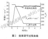 圖2給出了轉(zhuǎn)速給定值nrd =30 r.min-l,設(shè)定uref調(diào)節(jié)步長為1v時(shí)的效率優(yōu)化過程實(shí)測曲線。由圖2可知,可以通過uref,一直減小來實(shí)現(xiàn)系統(tǒng)的效率優(yōu)化。但是由圖2也可看出,對應(yīng)于uref不斷減小的調(diào)節(jié)過程,轉(zhuǎn)速偏差明顯大于無uref;調(diào)節(jié)的時(shí)段。這表明,作為一種外加擾動(dòng),驅(qū)動(dòng)電壓幅值的改變影響了轉(zhuǎn)速控制效果。