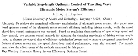 關(guān)鍵詞:超聲波電機(jī);系統(tǒng)效率;優(yōu)化控制