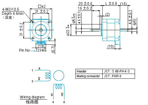 日本信濃電機:SST43D1155(1.8° 2.5A 24V 1.8Ω 309mN.m)