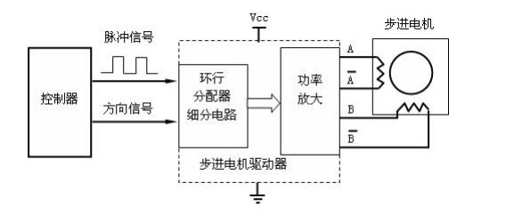 步進電機必須有驅(qū)動器和控制器才能正常工作。驅(qū)動器的作用是對控制脈沖進行環(huán)形分配、功率放大,使步進電機繞組按一定順序通電,控制電機轉(zhuǎn)動。