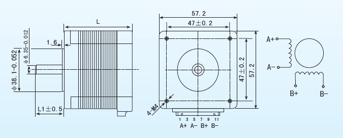 57系列步進(jìn)電機(jī)安裝尺寸: