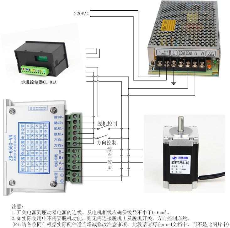 另外,如果對(duì)步進(jìn)電機(jī)運(yùn)行有方向等要求,接上方向信號(hào),即驅(qū)動(dòng)器方向正脈沖正并起來后接控制器或PLC或單片機(jī)的公共正(正5V/公共端),控制器或PLC或單片機(jī)的脈沖接驅(qū)動(dòng)器的脈沖-,控制器或PLC或單片機(jī)的方向接驅(qū)動(dòng)器方向-