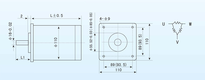 110系列電機(jī)分為兩相三相,兩相電機(jī)的安裝尺寸為