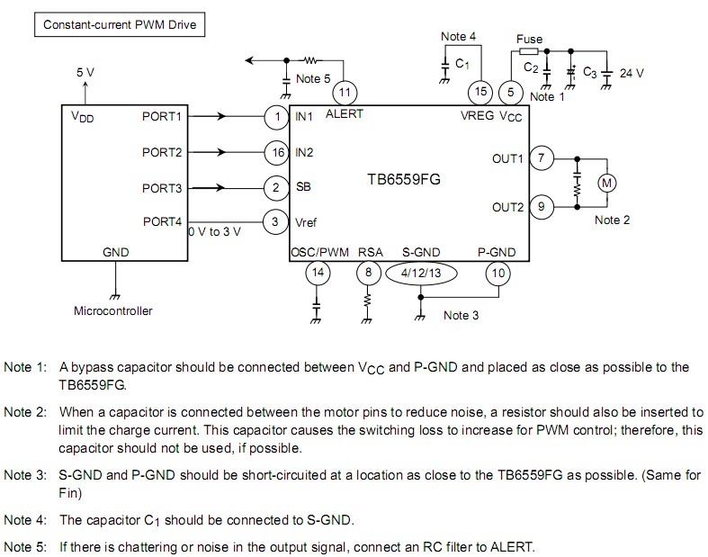 | TB6559FG 是一款全橋直流電機驅(qū)動電路芯片,內(nèi)置晶體管輸出。它通過P頻率mosfet偏高和n頻率,場效應(yīng)管偏低, 這樣不再需要一個電荷泵。并且達(dá)到高效率工作。 特性 電源電壓:50 V 輸出電流:2.5A ****電阻:1.3Ω PWM恒流輸出脈寬調(diào)制 內(nèi)置四種模式可選,:順時針(CW),逆時針方向(CCW)、短剎車和停止 并且自帶過載保護(hù),熱關(guān)閉 TB6559參考圖: TB6559應(yīng)用案例: