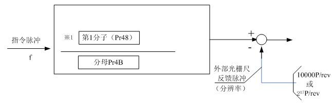 | 例2 電機(jī)每轉(zhuǎn)1次指令輸入(f)為3600時(shí) | Pr48 10000    Pr4B 3600