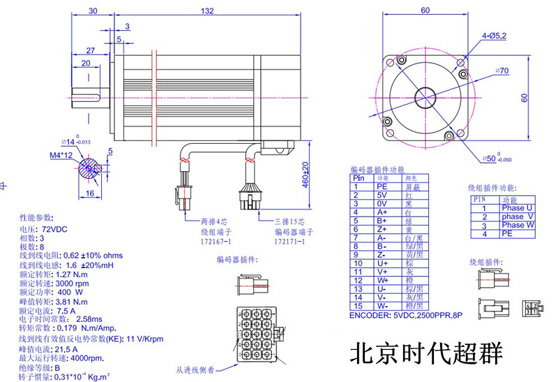400W伺服電機(jī)參數(shù)與尺寸介紹: