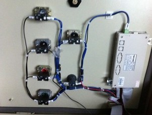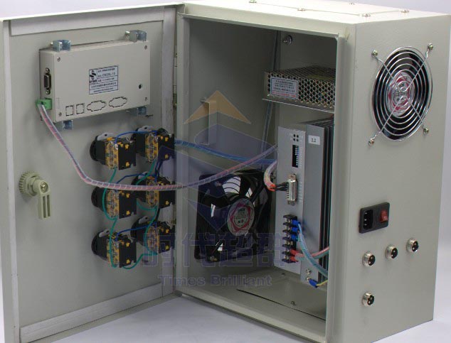 配電箱有進(jìn)出兩個(gè)220V風(fēng)扇,解決了散熱的問(wèn)題,接近開(kāi)關(guān)采用航空插頭,按鈕六個(gè),啟動(dòng) 暫停, 點(diǎn)動(dòng)左,點(diǎn)動(dòng)右,高速左 高速右,等等 這些是可以根據(jù)您的要求來(lái)更改的。 內(nèi)部圖片: