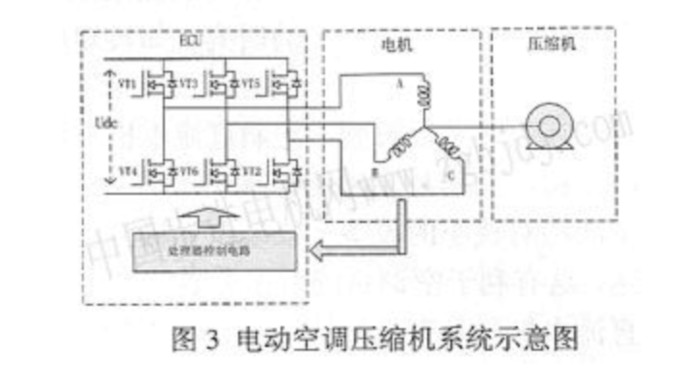 1 3電動(dòng)空調(diào)壓縮機(jī)技術(shù)的發(fā)展前景  空調(diào)壓縮機(jī)是空調(diào)系統(tǒng)的核心部件。隨著新能源汽車的發(fā)展,也隨著人們對(duì)汽車舒適性要求的提高,各種新型空調(diào)系統(tǒng)不斷出現(xiàn),這也推動(dòng)了空調(diào)壓縮機(jī)制造技術(shù)的不斷進(jìn)步。從目前空調(diào)壓縮機(jī)的發(fā)展趨勢(shì)來看,結(jié)構(gòu)緊湊、高效節(jié)能以及微振低噪等特點(diǎn)是空調(diào)壓縮機(jī)制造技術(shù)不斷追求的目標(biāo)。 2無刷直流電機(jī)技術(shù)  無刷直流電機(jī)作為一種挑戰(zhàn)傳統(tǒng)直流電機(jī)地位的電機(jī)技術(shù),近年來已經(jīng)得到了廣泛而大量的研究。由于電子換向器的引入,傳統(tǒng)直流電機(jī)中存在已久的電刷造成的諸多問題,在無刷直流電機(jī)中得到了很好解決。 并且隨著現(xiàn)代電力電子技術(shù),以及微處理器技術(shù)的迅猛發(fā)展,無刷直流電動(dòng)機(jī)的功率等級(jí)、可靠性等都得到了極大的提高和改善。無刷直流電機(jī)技術(shù)已經(jīng)在許多領(lǐng)域得到的實(shí)際應(yīng)用,并表現(xiàn)出了良好的性能。 與傳統(tǒng)直流電機(jī)相比,無刷直流電機(jī)不能直接加電工作,電機(jī)的運(yùn)轉(zhuǎn)必須通過一個(gè)電力電子器件構(gòu)成的逆變橋來控制電機(jī)的電壓、電流和各相繞組的導(dǎo)通相序。因而,使用無刷技術(shù)的電動(dòng)空調(diào)系統(tǒng)豐要由壓縮機(jī)、電機(jī)和電子控制單元(Ecu)三個(gè)部件組成。電機(jī)驅(qū)動(dòng)壓縮機(jī),而Ecu控制電機(jī)的運(yùn)行,圖3給出了一種系統(tǒng)組成示意圖。