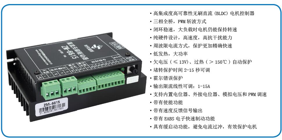 ZM-6615高性能無刷驅(qū)動器(控制器)是我公司基于****BiCD工藝集成電路開發(fā)的高性能直流無刷控制器(驅(qū)動器),具有體積小、發(fā)熱低、可靠性高、壽命長、易于使用等特點。ZM-6615高集成度高可靠性無刷直流(BLDC)電機控制器;三相全橋,PWM斬波方式;閉環(huán)穩(wěn)速,大負載時電機仍能保持轉(zhuǎn)速;純硬件設(shè)計,高速度,高抗干擾能力;周波限電流方式,保護更加精確快速;低發(fā)熱,大功率。 聯(lián)系方式:QQ:467102884