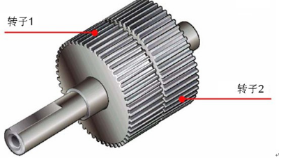 轉(zhuǎn)子的外圈由 50個(gè)小齒構(gòu)成,轉(zhuǎn)子 1 和轉(zhuǎn)子 2 的小齒于構(gòu)造上互 相錯(cuò)開 1/2