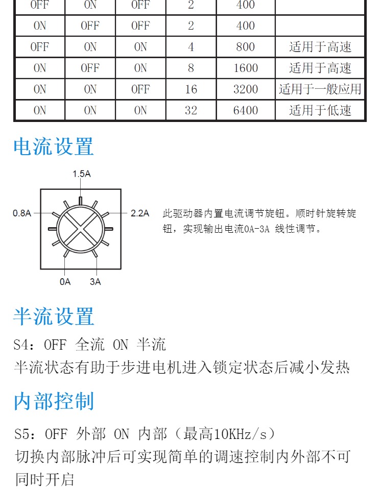 1.步進(jìn)電機(jī)驅(qū)動器電壓的確定 混合式步進(jìn)電機(jī)驅(qū)動器的供電電源電壓一般是一個較寬的范圍(比如ZD-2HD430S的供電電壓為9~32VDC),電源電壓通常根據(jù)電機(jī)的工作轉(zhuǎn)速和響應(yīng)要求來選擇。如果電機(jī)工作轉(zhuǎn)速較高或響應(yīng)要求較快,那么電壓取值也高,但注意電源電壓的紋波不能超過驅(qū)動器的****輸入電壓,否則可能損壞驅(qū)動器。 2.步進(jìn)電機(jī)驅(qū)動器電流的確定 供電電源電流一般根據(jù)驅(qū)動器的輸出相電流I來確定。如果采用線性電源,電源電流一般可取I 的1.1~1.3倍;如果采用開關(guān)電源,電源電流一般可取I 的1.5~2.0倍。