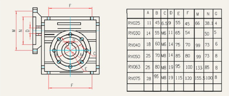 蝸輪蝸桿的主要作用:降速同時(shí)提高輸出扭矩,扭矩輸出比例按電機(jī)輸出乘減速比,但要注意不能超出減速機(jī)額定扭矩。 蝸輪蝸桿的優(yōu)點(diǎn): 1、機(jī)械結(jié)構(gòu)緊湊、體積外形輕巧、小型高效; 2、熱交換性能好、散熱快; 3、安裝簡易、靈活輕捷、性能優(yōu)越、易于維護(hù)檢修; 4、運(yùn)行平穩(wěn)、噪音小、經(jīng)久耐用; 5、使用性強(qiáng)、安全可靠性大; 產(chǎn)品尺寸圖: