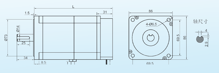 86EBP181ALC-TK0閉環(huán)步進電機,步距角1.8°、靜轉矩12.5Nm、電流6A、電壓24-110V、相電阻0.69Ω、相電感7.2mH、機身長181mm。