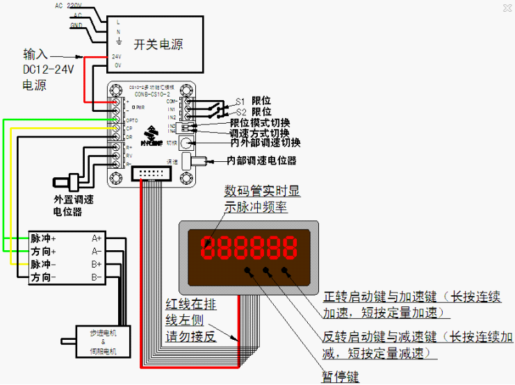 買.就配送轉(zhuǎn)接板 控制器接線到驅(qū)動器到電源,到驅(qū)動器 到外接電位器更方便直接引線。。。 還有脈沖指示燈和方向燈哦....