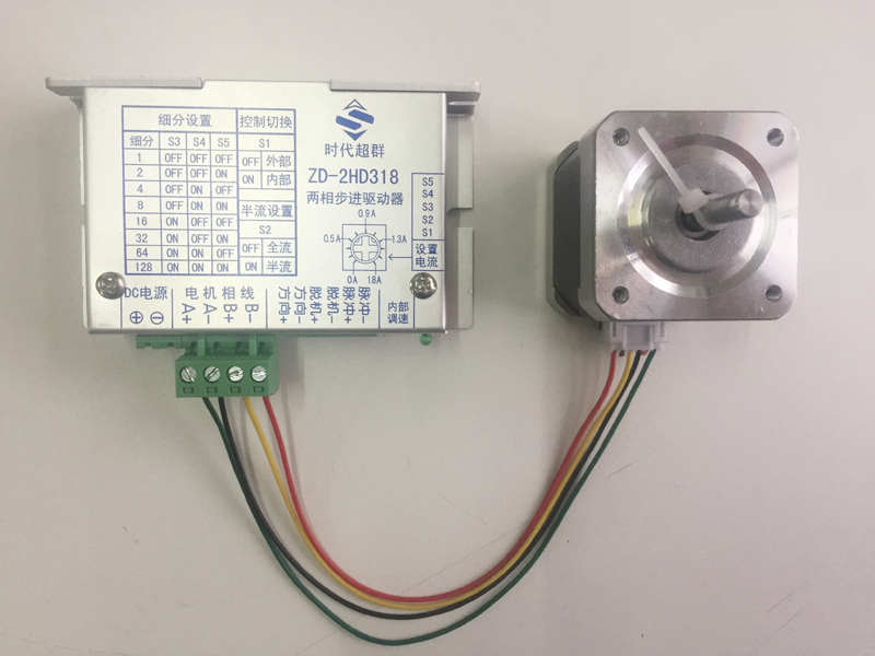 上圖測(cè)試產(chǎn)品為42HBS48AL4-TF0兩相步進(jìn)電機(jī),ZD-2HD318步進(jìn)電機(jī)驅(qū)動(dòng)器,步進(jìn)電機(jī)測(cè)試板,S-60-24開關(guān)電源