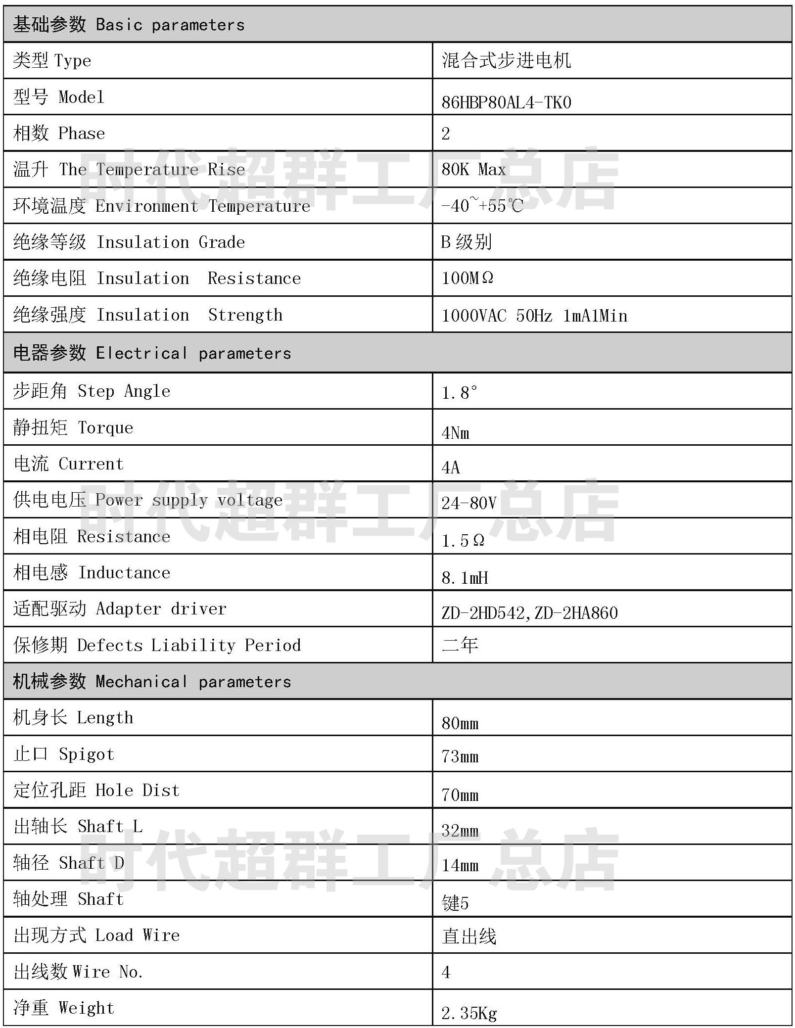 | 2 | 1.8 | 4 | 4 | 80 | 2.35 | 86HBP98AL4-TK0+驅(qū)動(dòng)套裝