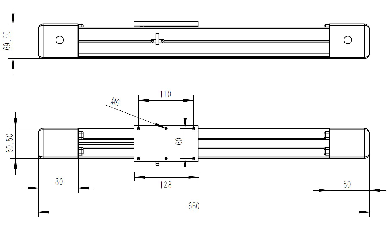 上圖為客戶定制的雙滑塊型DS60M125C系列密閉同步帶導(dǎo),軌型材寬60MM,電機(jī)轉(zhuǎn)一圈移動(dòng)125MM,有效形成為1000MM,總長(zhǎng)1600MM,配有86鏈接片,可配86無(wú)步進(jìn)電機(jī),此系列同步帶有效行程可做到50mm-3000mm,水平載重50kg.垂直載重30KG。 客戶定制示意圖如下;