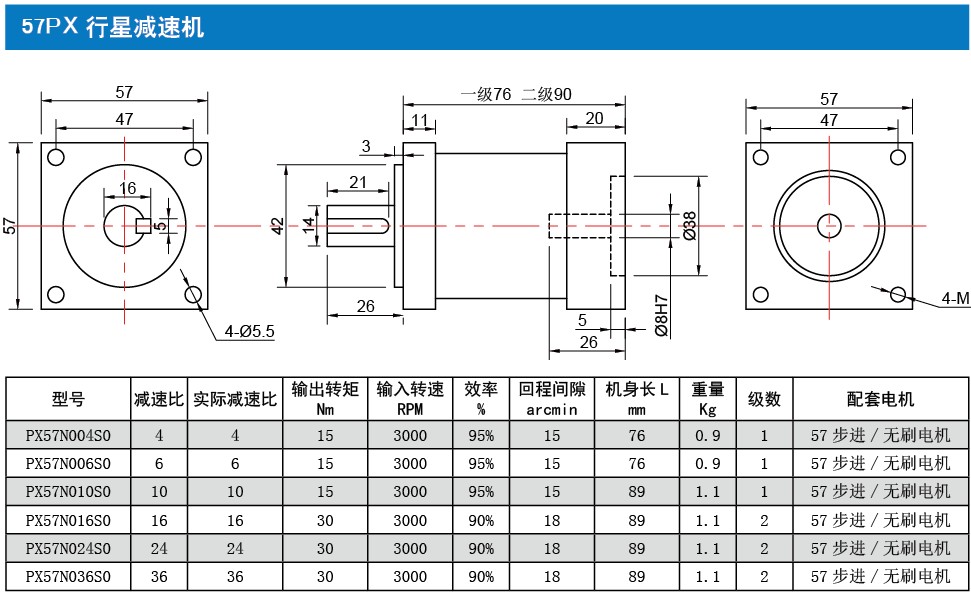 客戶在扭矩不夠的情況下,加裝行星減速機PX57N010S0為例減速比為1:10,輸出扭矩為0.79nm*10*85%=6.32nm<減速機輸出轉(zhuǎn)矩15NM,所以****輸出也就6.32NM,輸入轉(zhuǎn)速為3000rpm/10=300轉(zhuǎn),回程間隙≤20,可配57系列無刷電機使用。