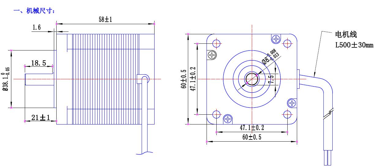 時(shí)代超群供應(yīng)的混合式兩相步進(jìn)電機(jī)60HBN58AL8-TF0兩相混合式步進(jìn)電機(jī) 步距角1.8°,扭矩2.4N.m,電流3A,機(jī)身高58MM,軸徑Φ8MM,銑扁,出軸長(zhǎng)21mm,八線(xiàn),采用永磁硅鋼片造,低碳環(huán)護(hù),力矩,與其他品牌步進(jìn)電機(jī)相比具有定位精度高,輸出力矩高,響應(yīng)頻率高,運(yùn)行噪音低,動(dòng)態(tài)特性好等特點(diǎn)及優(yōu)勢(shì)。