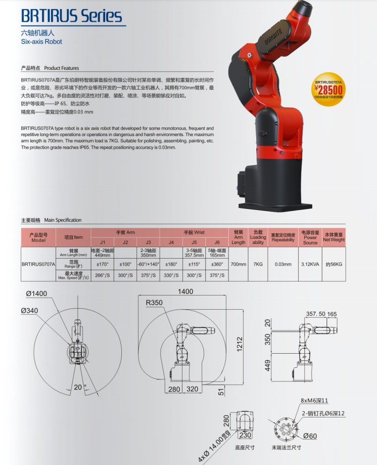 六軸工業(yè)機(jī)器人應(yīng)用參數(shù)