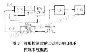 式中n-步進(jìn)電動機(jī)轉(zhuǎn)換拍數(shù)(n>n) g.應(yīng)用閉環(huán)驅(qū)動,效率可增到7.8倍,輸出功率可增到3.3倍,速度可增到3.6倍。 閉環(huán)驅(qū)動的步進(jìn)電動機(jī)的性能在所有方面均優(yōu)于開環(huán)驅(qū)動的步進(jìn)電動機(jī)。步進(jìn)電動機(jī)閉環(huán)驅(qū)動具有步進(jìn)電動機(jī)開環(huán)驅(qū)動和直流無刷伺服電機(jī)的優(yōu)點(diǎn)。因此,在可靠性要求很高的位置控制系統(tǒng)中,閉環(huán)控制的步進(jìn)電動機(jī)將獲得廣泛應(yīng)用。 3編碼器形式的步進(jìn)電動機(jī)闋環(huán)控制系統(tǒng) 步進(jìn)電動機(jī)的閉環(huán)控制最早是采用編碼器的形式,圖1是其原理示意圖。初始狀態(tài),系統(tǒng)受一相或幾相激磁而靜止。開始工作后,先把目標(biāo)位置送入減法計(jì)數(shù)器;然后,“起動”脈沖信號加到控制單元上,控制單元在“起動”脈沖的作用下,立即把步進(jìn)命令送入相序發(fā)生器,使激磁變化一次,后續(xù)的脈沖則由編碼器裝置產(chǎn)生。編碼器每產(chǎn)生一個脈沖,就對法計(jì)數(shù)器減1,因而,減法計(jì)數(shù)器記錄的是實(shí)際的轉(zhuǎn)子位置。當(dāng)減法計(jì)數(shù)器的計(jì)數(shù)減至零時,發(fā)出一個停止信號到控制單元,禁止以后的步進(jìn)命令,系統(tǒng)停止工作。  對于低分辨率的步進(jìn)電動機(jī),通常使用一個開了槽的圓盤和光電傳感器作為反饋編碼器的組合件,如圖2所示,槽口的數(shù)目等于電機(jī)每轉(zhuǎn)所走的步數(shù)。 對于高分辨率的步進(jìn)電劭機(jī),則需采用高分辨率的增量編碼器,如旋轉(zhuǎn)變壓器增量編碼器,感應(yīng)同步器增量編碼器等。 由于反饋編碼器價格昂貴,而且為了把編碼器安放到步進(jìn)電動機(jī)的軸上,要求系統(tǒng)具有更大的體積,這二大缺陷限制了編碼器形式的步進(jìn)電動機(jī)閉環(huán)控制系統(tǒng)的應(yīng)用。 4波形檢測形式的步進(jìn)電動機(jī)閉環(huán)控制系統(tǒng) 波形檢測形式的步進(jìn)電動機(jī)閉環(huán)控制系統(tǒng)的原理是通過對步進(jìn)電動機(jī)相電流或繞組反電勢(或繞組反電勢所引起的電流)的檢測,間接得到轉(zhuǎn)子位置信息,反饋到控制單元產(chǎn)生控制脈沖,控制步進(jìn)電動機(jī)運(yùn)動。  圖3是其原理圖。波形檢測器是由簡單的電子線路構(gòu)成,價格便宜,如果需要,可直接安裝在控制器邏輯線路中,步進(jìn)電動機(jī)不需附加的機(jī)械連接。 4.1利用電流檢測的步進(jìn)電動機(jī)閉環(huán)控制系統(tǒng) 用電流檢測的步進(jìn)電動機(jī)閉環(huán)控制是基于某些反應(yīng)式步進(jìn)電動機(jī)的相電流在一定速率范圍內(nèi)出現(xiàn)正的或負(fù)的極值這一概念進(jìn)行的。對系統(tǒng)加初始起動脈沖,電機(jī)起動,當(dāng)相電流出現(xiàn)極值的瞬間,波峰檢測線路瞬時產(chǎn)生一個脈沖或者定時信號,反饋給控制單元,作為后續(xù)脈沖,實(shí)現(xiàn)了步進(jìn)電動機(jī)的閉環(huán)控制。值得注意的是,電機(jī)導(dǎo)通相電流和截止相電流均可能出現(xiàn)若干個波峰,應(yīng)在哪一種狀態(tài)下進(jìn)行檢測,可根據(jù)電機(jī)的實(shí)際運(yùn)行確定。如圖4所示,電流檢測可通過在電流回路中插入一個已知阻值的小電阻,測量電流通過時的電壓實(shí)現(xiàn)。波峰檢測線路一般均采用模擬微分法,波峰用di/dt經(jīng)過零值表示。檢測原理圖如圖5所示。