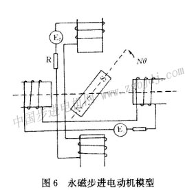 4.2利用反電勢檢測的步進(jìn)電動機(jī)閉環(huán)控制系統(tǒng) 永磁步進(jìn)電動機(jī)利用反電勢檢測的閉環(huán)控制系統(tǒng)具有其優(yōu)越性。一臺永磁步進(jìn)電動機(jī)從實(shí)質(zhì)上講,就是一臺交流兩相同步電動機(jī),可用圖6所示的模墅描述。  相繞組的電壓方程可表示成:  式中l(wèi)——回路電感 r——回路電阻 ii——相電流 θ——轉(zhuǎn)子角位移 n——轉(zhuǎn)子齒數(shù) k——轉(zhuǎn)矩常數(shù) ei——加在第i相上的電壓 在電壓方程里,-ksinnθ.θ和kcosnθ.θ是由于電機(jī)旋轉(zhuǎn)時在繞組中產(chǎn)生的反電勢。轉(zhuǎn)子位置信號體現(xiàn)在反電勢的相位上(sinnθ和cosnθ)。轉(zhuǎn)子的速度可由反電勢的幅值得出或根據(jù)反電勢的頻率計(jì)算。因此,從反電勢中,可得到足夠的控制電機(jī)性能的信步進(jìn)電動機(jī)的閉環(huán)控制系統(tǒng)號。 由于步進(jìn)電動機(jī)繞組中的反電勢反映了轉(zhuǎn)子的角位置和角速度,因此,構(gòu)成反饋的關(guān)鍵是重新得到反電勢波形,以便對其進(jìn)行檢測,產(chǎn)生后續(xù)脈沖。重現(xiàn)反電勢波形的方法有兩種: a.輔助線圈法 輔助線圈法的原理如圖7所示,這個圖示出的僅是1相的回路,檢測線圈對繞在定子極上,檢測線圈內(nèi)產(chǎn)生的電壓可寫成:
