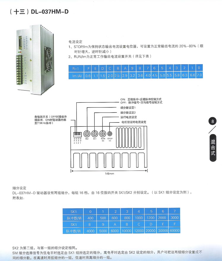 DL-037HM-D三相步進驅(qū)動器的供電電壓是220VAC,****電流是0.6-7A,16擋細分,適用于110BYG350、130BYG350系列步進電機。
