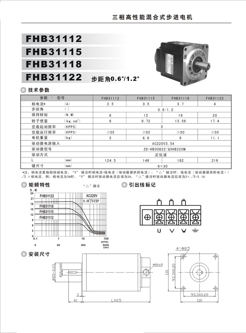 FHB31112 FHB31115 FHB31118 FHB31122(110三相高性能步進電機)