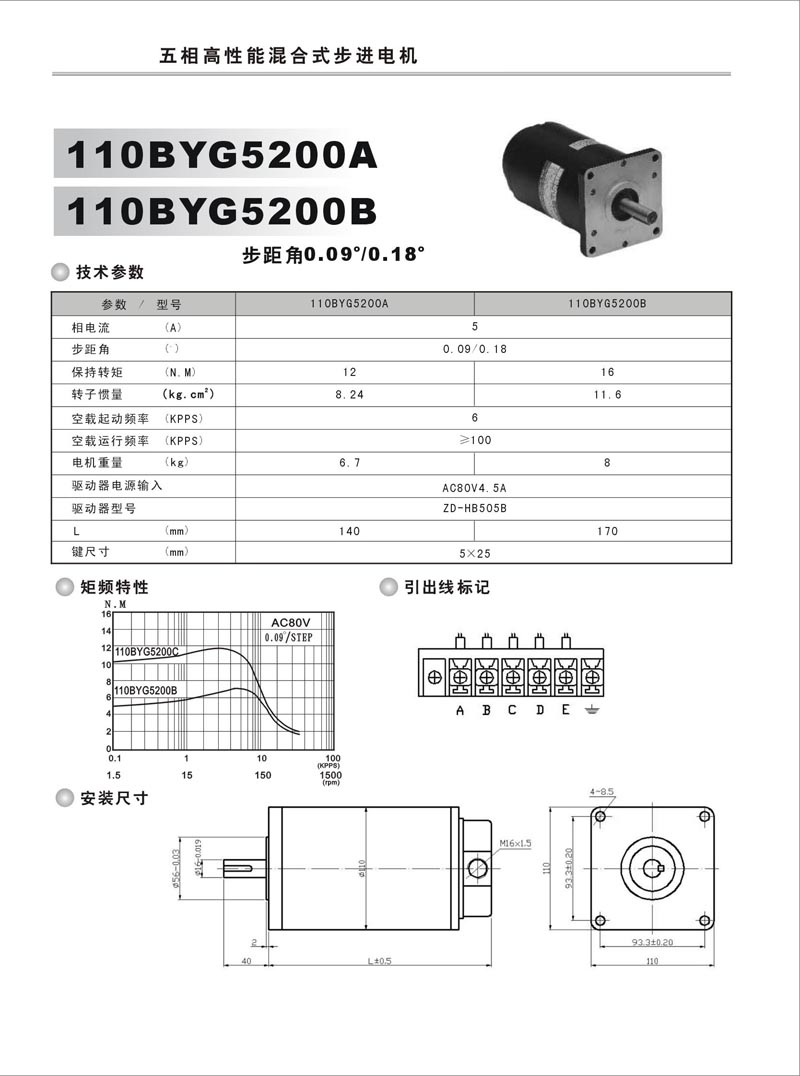 當前位置:首頁--步進電機--110系列五相混合式步進電機