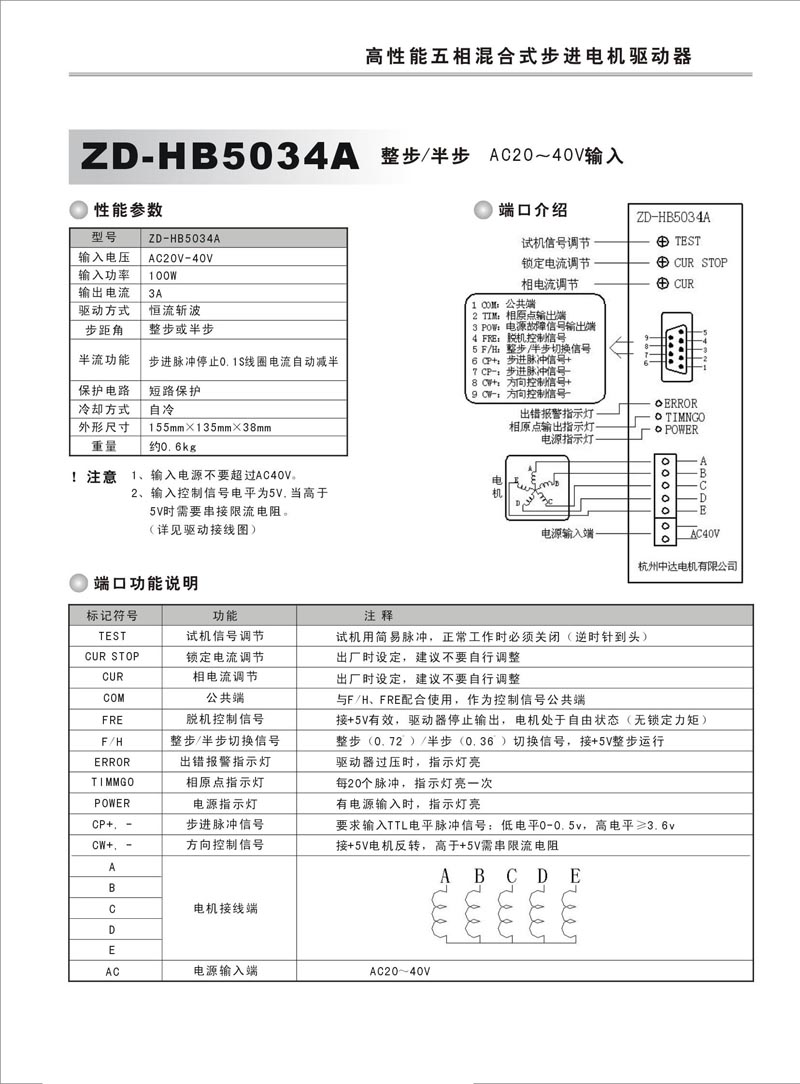 ZD-HB5034A(五相混合式步進(jìn)驅(qū)動(dòng)器)